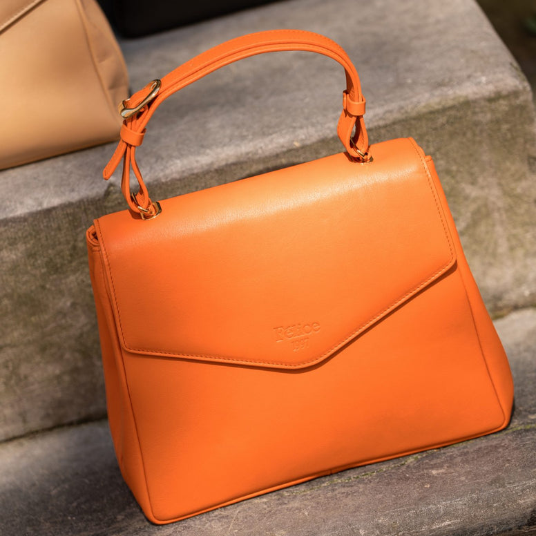 De Classic Orange brengt warmte en energie in je look. Haar koningsblauwe voering verrast elke keer met een speelse twist; vrolijk vanbinnen, chic vanbuiten. Dit is de tas die je laat stralen en gezien worden, zonder dat ze schreeuwerig is.